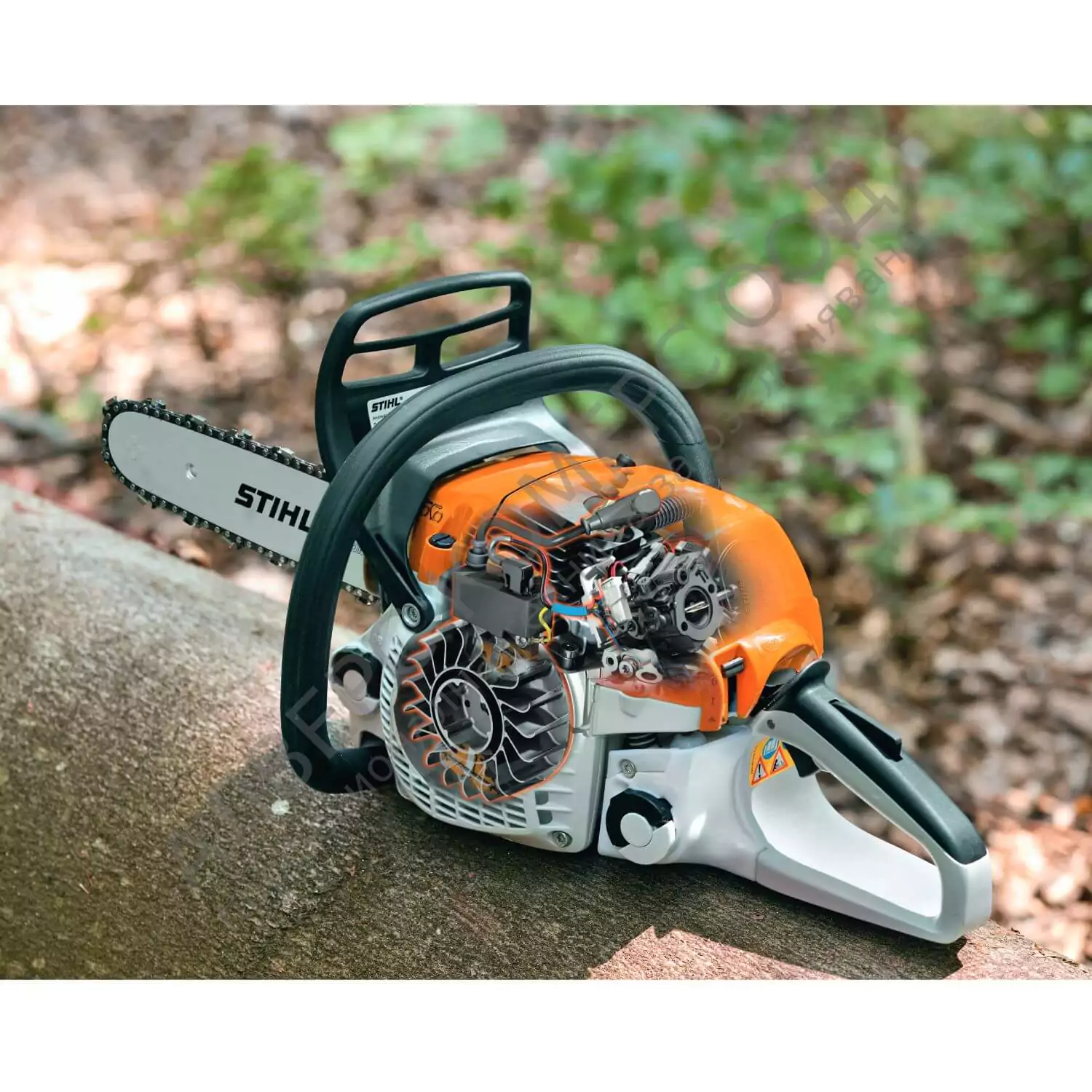 - Електронната система M-Tronic за управление автоматично измерва необходимото количество гориво и се напасва към условията, характерни за околната среда, което улеснява стартирането на двигателя. Така моторният трион работи винаги с оптимална мощност.